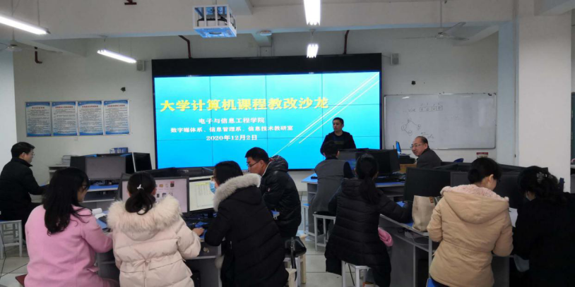 为了提高大学计算机基础课程的教学水平,进一步推进我校学生信息技术技能和素养,培养学生计算思维能力,2020年12月2日下午,欧冠官方网站在逸夫科技楼A501召开以“夯实课程内容体系 探索教学模式改革 培养计算思维能力”为主题的大学计算机课程教改沙龙,信息技术教研室全体老师以及数字媒体系、信息管理系承担大学计算机基础课程教学的教师的参加了此次活动,学院副院长王克刚教授参加活动并就高校教学改革思路与方法做了专题讲座。