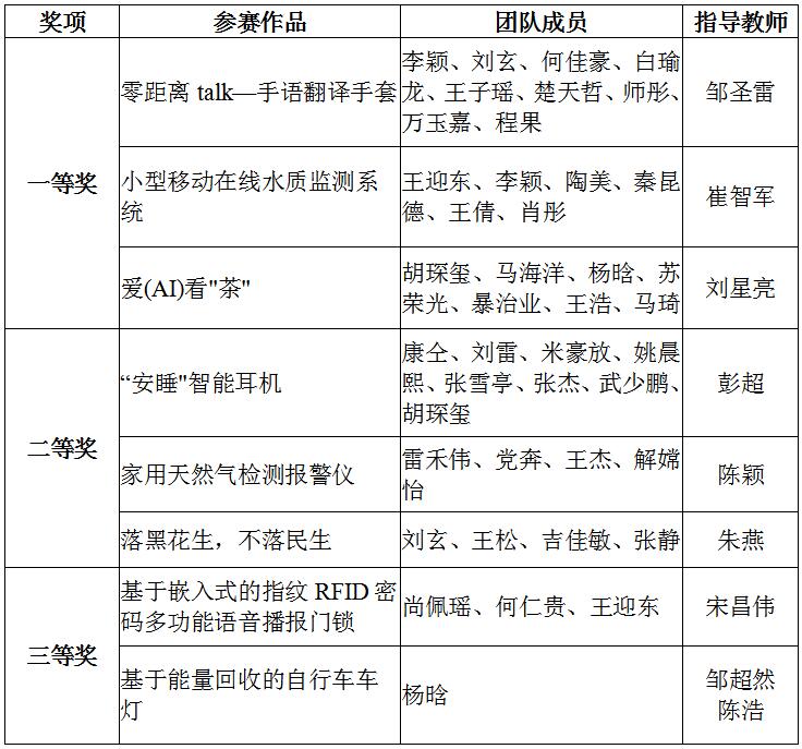 自2019年11月校赛启动以来,欧冠投注官网入口高度重视,统筹安排部署,及时组织学生报名参赛,动员教师加强指导,积极孵化培育项目。在疫情期间,创新工作思路,克服了疫情防控的重重困难,精心打磨,提升作品质量,项目《小型移动在线水质监测系统》、《爱(AI)看“茶”》、《手语翻译手套》在获得校赛一等奖后,推荐参加省级比赛获得了铜奖。