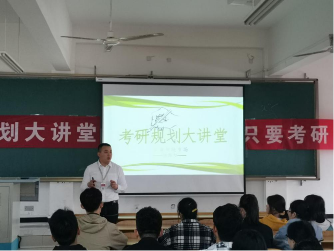 徐海力老师首先以“我们为什么要考研,我们要不要考研”为话题引导同学树立正确的考研观,指导学生规划未来。其次,他介绍了考研报考的相关知识,提醒同学们留意考研报考相关信息。最后,徐老师针对不同学校的录取分数和录取条件,对同学们报考的院校和专业做了相关建议。