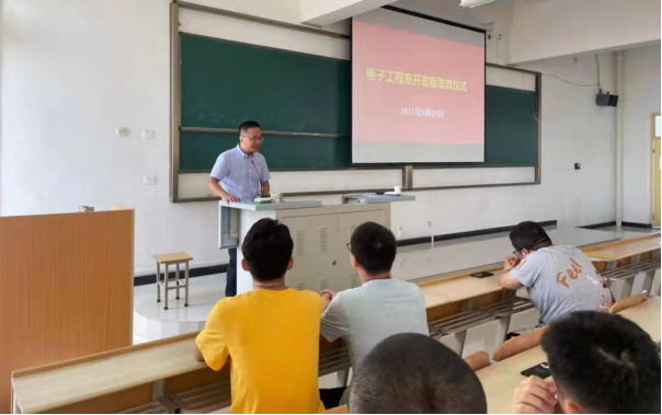2021年9月29日下午,欧冠投注官网入口2019级电子信息工程专业本科生FPGA开发板发放仪式在江北教学楼1305隆重举行。本次活动旨在激发同学们的学习兴趣,提高同学们的工程实践能力,践行欧冠投注官网入口以学生为中心的教育理念。参加本次仪式的有欧冠投注官网入口副院长宋权华副教授、北京至芯开源科技有限责任公司总经理雷斌先生、电子工程系部分教师、电子信息工程专业全体在校学生。仪式由丁礼磊老师主持。