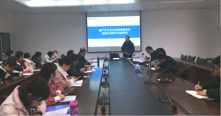 本次“燚讲堂”第二个环节为科研政策与科研讲座专题,副院长王克刚教授首先向老师们宣讲了“全国教育科研工作会议”精神以及高校科研工作相关政策和文件。接下来,王院长以“基于学习优化与信息融合的陶瓷文物碎片分类”为题,从研究背景、研究思路和方法、研究内容成果、创新点和总结展望几个方面详细介绍了课题研究的完整过程。他指出,文化遗产数字化保护研究已经得到了国内外研究人员的广泛关注,破碎文物修复是文化遗产保护的重要工作内容,利用计算机辅助进行文物虚拟修复得到了很多研究者的重视,在未来将是一项很有意义的工作。