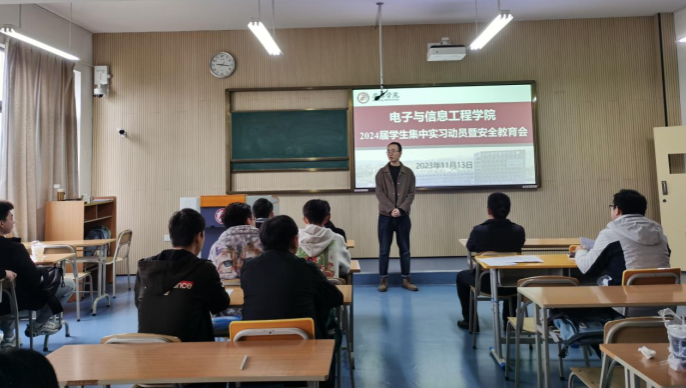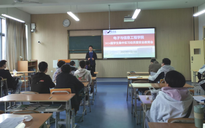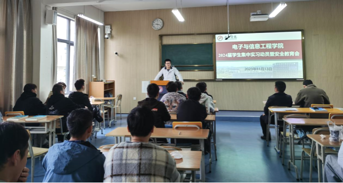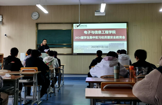 11月13日上午,欧冠投注官网入口1号教学楼1308教室召开了2024届毕业生集中实习动员暨安全教育培训会。会议由学院副院长宋权华主持,学院党总支副书记蔡正旺、实习班级辅导员张宇航、实习带队教师邬子逸以及参加本次集中实习的全体学生参加了会议。