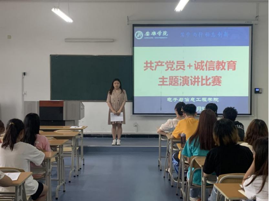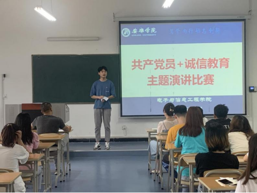 活动开始,学生第一党支部书记成英丽老师讲述了开展此次活动的目的和意义,要求各位中共党员通过此次活动深刻认识诚信做人、诚信做事的重要意义。紧接着,共产党员+诚信教育主题演讲活动开始,学生第一、二党支部全体中共党员有序依次上台,以“诚信”为主题给大家带来精彩演讲,赢得同学们阵阵掌声。