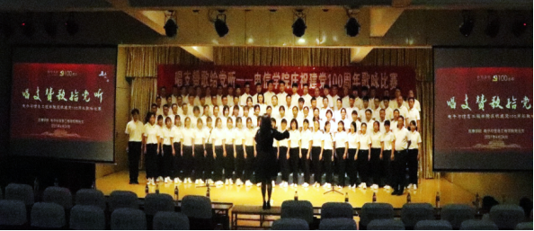 教工党员支部、学生党员支部分别合唱了《没有共产党就没有新中国》《歌唱祖国》《中国,中国,鲜红的太阳永不落》《让我们荡起双桨》《我和我的祖国》等红色经典歌曲。引导广大师生党员深入挖掘红色歌曲背后的党史故事,传承红色文化、赓续共产党人的红色血脉与革命精神。