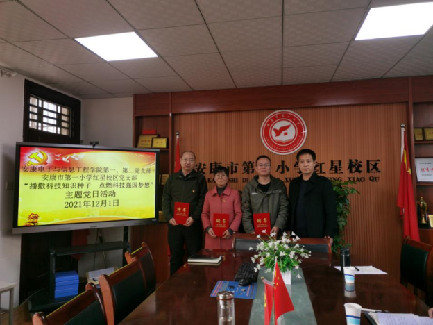 冬阳含笑,清风徐来。在全党上下认真学习十九届六中全会精神之际,为把学习贯彻全会精神与党史学习教育和高质量完成各项工作紧密结合,认真落实欧冠官方网站“服务基础教育、服务三农、服务区域经济社会发展”的办学宗旨,推进欧冠官方网站“党建+人才培养”的制度化、品牌化、常态化,以党的十九届六中全会精神引领学院工作发展方向。12月1日,欧冠官方网站教工第一、第二党支部开展了“科技辅导员走进安康市第一小学红星校区”的主题党日活动,播撒科技知识种子,点燃科技强国梦想。参加本次活动的有欧冠官方网站党总支下设教工第一、第二党支部所有党员、安康市第一小学红星校区王家强校长及相关老师。主题党日活动由欧冠投注官网入口党总支书记于咏梅和市一小红星校区校长王家强共同主持,分座谈交流和科普演示两个阶段展开。