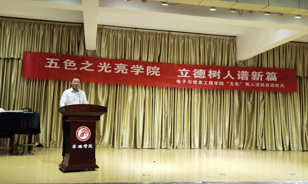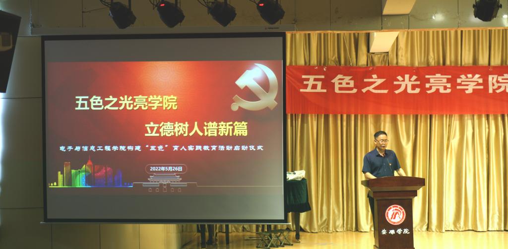 欧冠官方网站党委委员、副校长张东红作重要讲话。他肯定了欧冠投注官网入口“五色”育人实践教育活动启动仪式活动形式多样、内涵丰富,以学科专业和第二课堂特色活动展示欧冠投注官网入口青年大学生新风貌、思想政治理论,实践表现,以此看到欧冠投注官网入口对大学生思想政治工作建设的高度重视。张东红表示,欧冠投注官网入口积极探索具有欧冠投注官网入口特色的“五色”育人模式,充分表明了欧冠投注官网入口认真贯彻落实立德树人根本任务、认真贯彻落实三全育人根本要求,认真贯彻落实习近平总书记近期在中国人民大学考察的重要讲话精神,坚持党的领导,传承红色基因,牢记党的教诲,培育立志民族复兴、堪当民族复兴大任的时代新人。就下一步推进“五色”育人工作,张东红提出五点希望:一是以“党旗红”为主色,发挥党旗领航引擎作用。大力推进网络思想政治教育,运用新媒体技术,推动思想政治工作传统优势同信息技术高度融合,使互联网成为开展大学生思想政治教育的新平台。以理想信念教育为重点,将习近平新时代中国特色社会主义思想和对党的路线方针政策的学习贯穿始终,确保社会主义大学的办学方向。二是以“科技蓝”为本色,建设高素质教师队伍。指导学生参加各级各类学科竞赛,增强实践创新技能,营造浓厚的学科竞赛氛围。让蓝色科技之光,照亮电信学子的人生坦途。三是以“榜样金”为特色,助力电信学子砥砺前行。结合专业特色做好志愿服务品牌项目,教育和引导学生提升社会服务意识和实践能力,弘扬志愿精神,传播青春向上的正能量。发挥榜样引领作用,传递青春奋进力量。四是以“活力橙”为亮色,引导学生坚定文化自信。整合先进文化涵养与文明养成教育,大力弘扬伟大建党精神、欧冠官方网站精神,讲好党史、团史、校史故事,创新开展校训、校歌、校风的宣传工作,培养既有文化底蕴又讲文明修养的“橙”色青年。五是以“制度黄”为底色,引导学生树立规矩意识。建立健全学院的学风制度,从制度层面帮助学生树立起热爱学习、学会学习、善于学习、坚持学习、全面学习、终身学习的观念。“五色”育人模式,为推进欧冠投注官网入口思政建设提供实践指引。张东红寄语,希望欧冠投注官网入口领导班子进一步细化措施,团结带领全体师生抓好落实,以高质量党建思政引领学院高质量发展,以实际行动和实践成果向建团一百周年和迎接党的二十大胜利召开献礼。