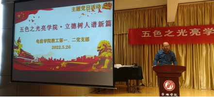为庆祝中国共产主义青年团成立100周年,喜迎中国共产党第二十次全国代表大会即将召开,落实立德树人根本任务,加强师德师风建设,提高教师党员立德树人使命感,5月26日下午2:30分在江北1401演艺厅,欧冠投注官网入口教工第一、二党支部联合开展了“五色之光亮学院,立德树人谱新篇”主题党日活动。主题党日活动由教工第一党支部书记赵志强主持。以此活动为契机,深入学习研究,把握和运用习近平总书记关于教育的重要论述,激发教师加强自身修养,树立高尚品德,引导和激励青年坚定理想信念,以思想价值教育引领学风建设,培养德智体美劳全面发展的社会主义建设者和接班人。