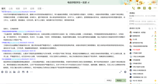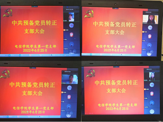6月25日上午,欧冠投注官网入口学生第一党支部采用线上腾讯会议的形式召开了中共预备党员转正党员大会,会议主要讨论了郭伊敏等15名中共预备党员的转正事宜。欧冠投注官网入口学生第一党支部书记程晓梅,党总支组织委员成英丽,支部组织(纪检)委员张宇航,宣传(统战)委员王心悦,支部全体党员参加了本次会议。会议由程晓梅主持。