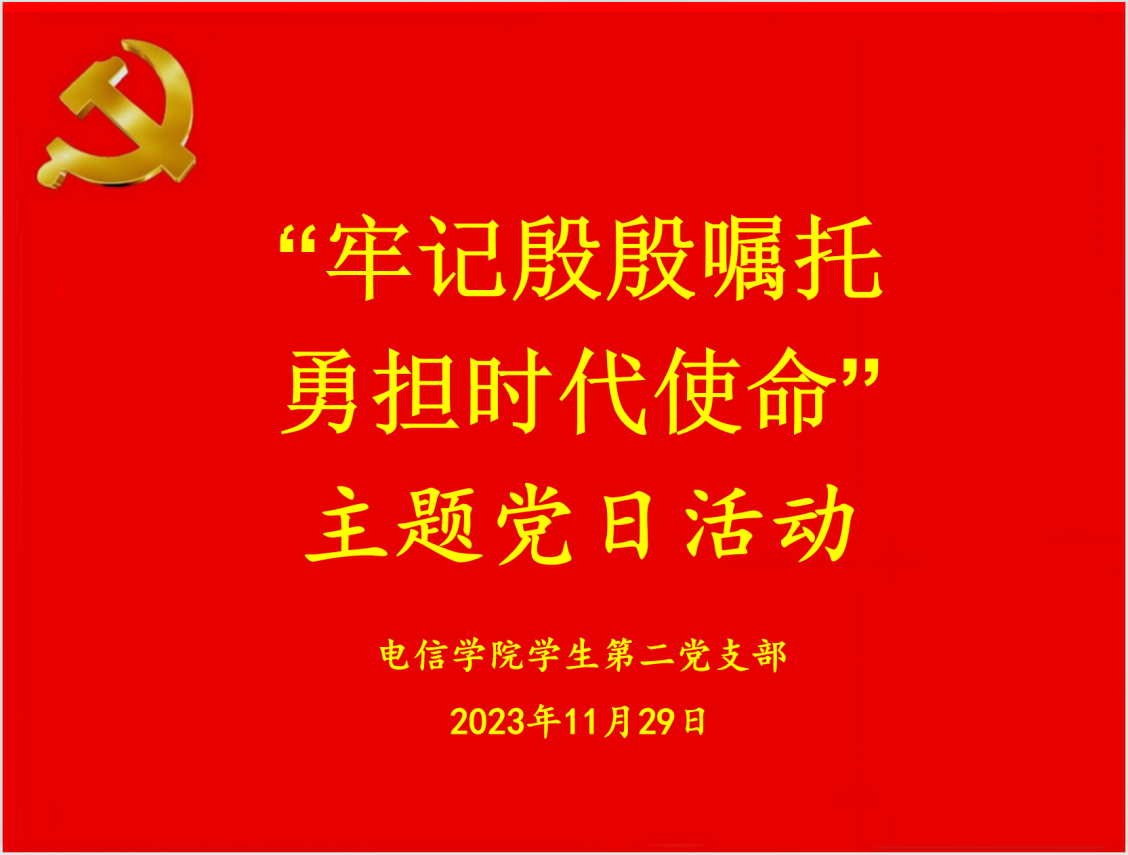 11月29日,欧冠投注官网入口学生第二党支部开展 “牢记殷殷嘱托,勇担时代使命”线上主题党日活动暨支部书记讲党课。会议由第二支部书记李章雨主持,学生第二党支部全体党员参加活动。
