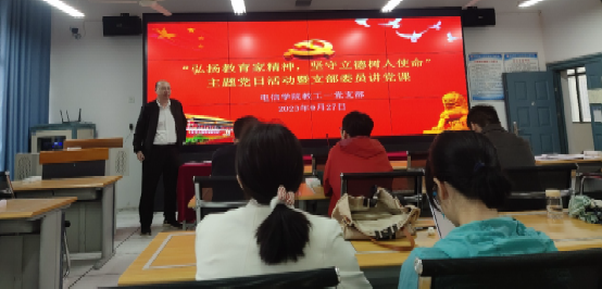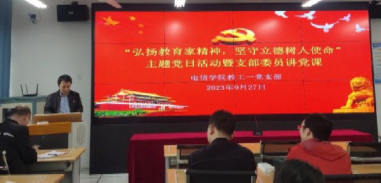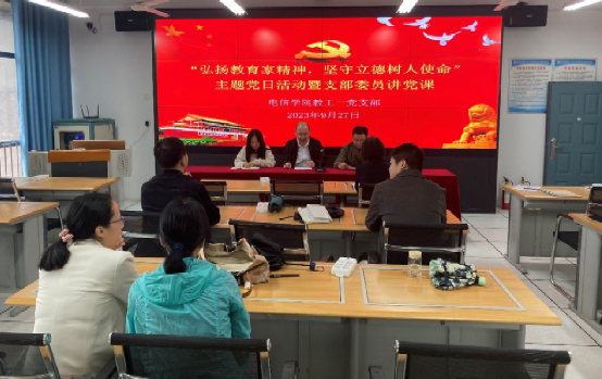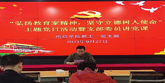 2023年9月27日下午,欧冠投注官网入口教工第一党支部开展“弘扬教育家精神,坚守立德树人使命”主题党日活动暨支部委员讲党课。活动由教工第一党支部书记赵志强主持,支部全体党员参加本次活动。