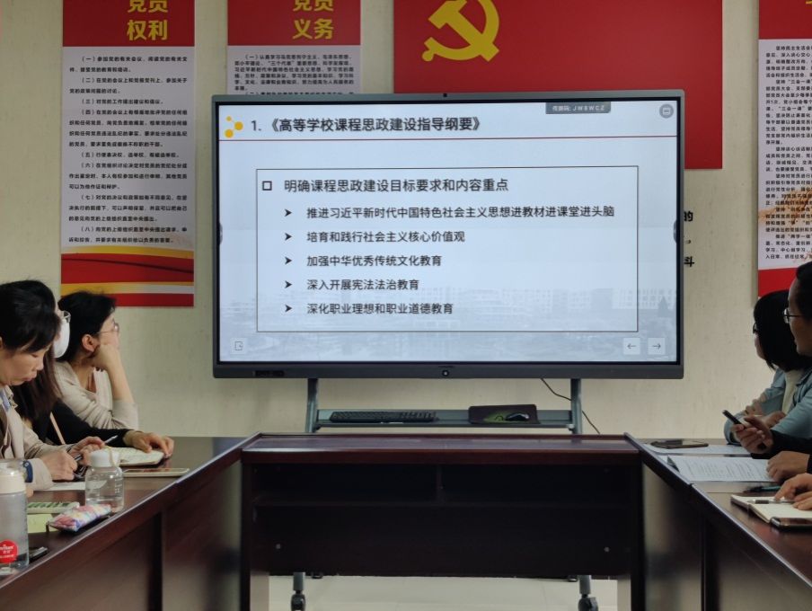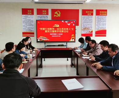 为了充分发挥教师党员的课程思政育人主体功能,2024年4月10日下午,欧冠投注官网入口教工第二党支部在B702会议室开展“党建引领教学,深化思政育人”主题党日暨教学观摩活动。活动由教工第二党支部书记丁礼磊主持,支部全体教师参加了本次活动。