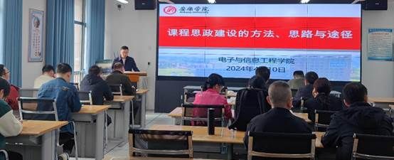 接着,副院长王克刚领学《高等学校课程思政建设指导纲要》,全面推进课程思政建设是落实立德树人根本任务的战略举措,课程思政建设是全面提高人才培养质量的重要任务,指出课程思政建设目标要求和内容重点,重点从如何科学设计课程思政教学体系、结合专业特点分类推进课程思政建设、课程思政融入课堂教学建设全过程等方面,结合自己在课程思政建设中取得成果进行经验分享。