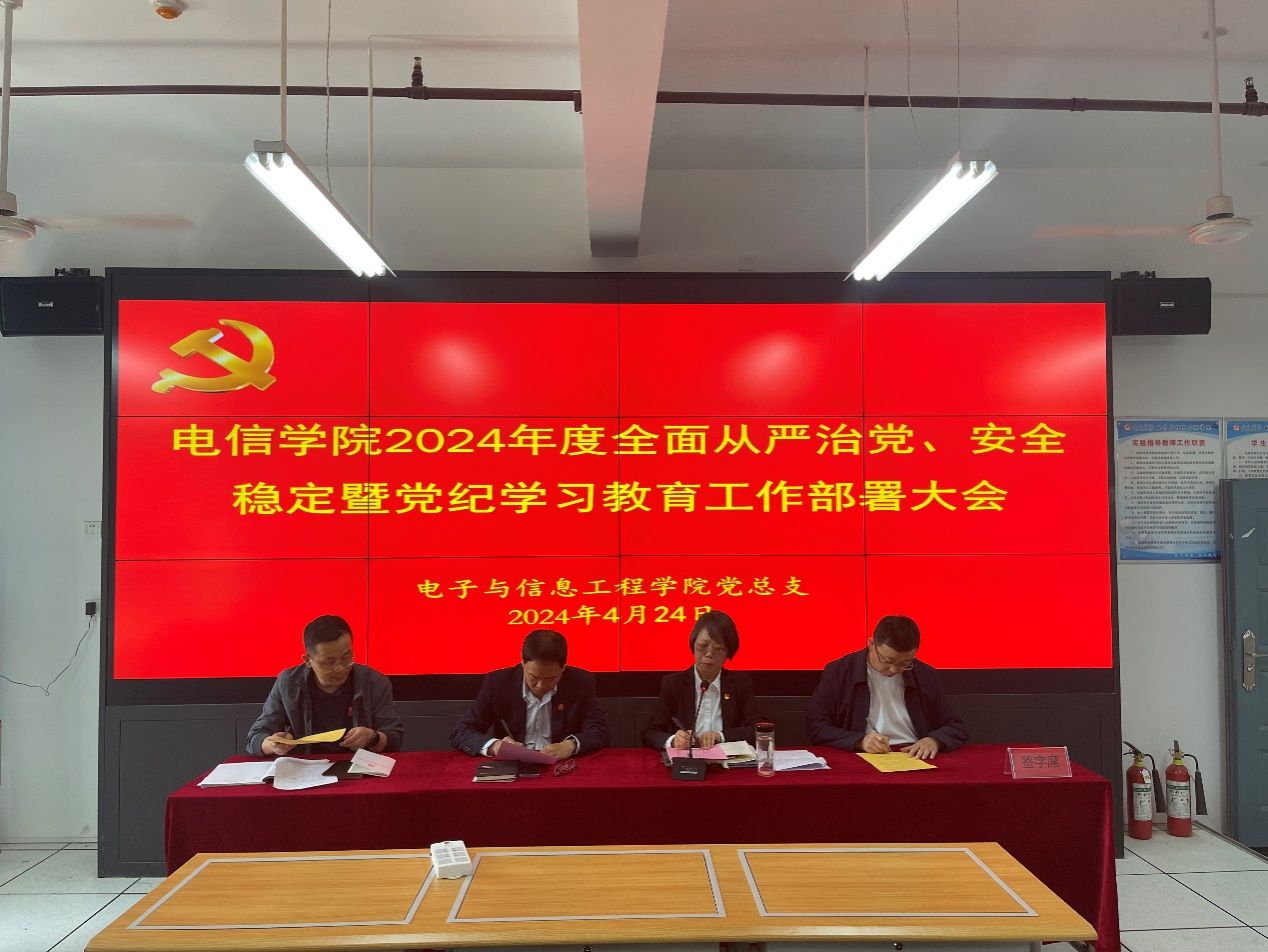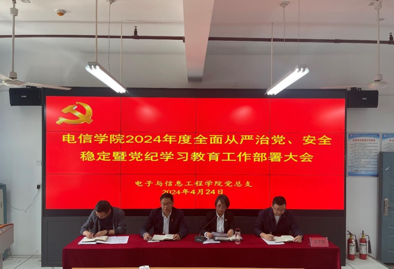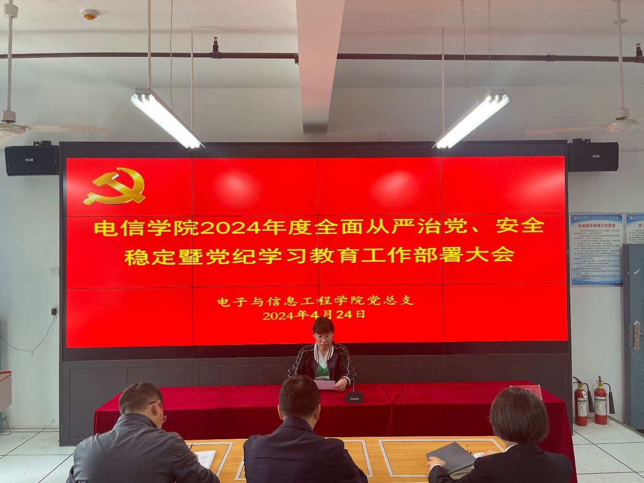 为深入学习贯彻习近平新时代中国特色社会主义思想、党的二十大精神,深入贯彻落实中省纪委全会精神,认真扎实开展党纪学习教育,深入贯彻落实中省和学校党委全面从严治党暨安全稳定和党纪学习教育工作部署会议精神,欧冠官方网站于4月24日在江北校区逸夫科技楼B602召开全面从严治党、安全稳定暨党纪学习教育工作部署大会,欧冠官方网站全体教职工参加,会议由党总支书记于咏梅主持。