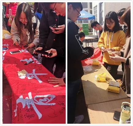 中午11点30分,在团总支副书记颜一帆的带领下,团总支各部门各行其责,有秩序的为参与活动的同学们讲解活动内容,动员大家在横幅上签字并领取绿植种子。通过欧冠投注官网入口全体团总支成员的不懈努力,在全校师生的积极响应下,植树节活动顺利完成。
