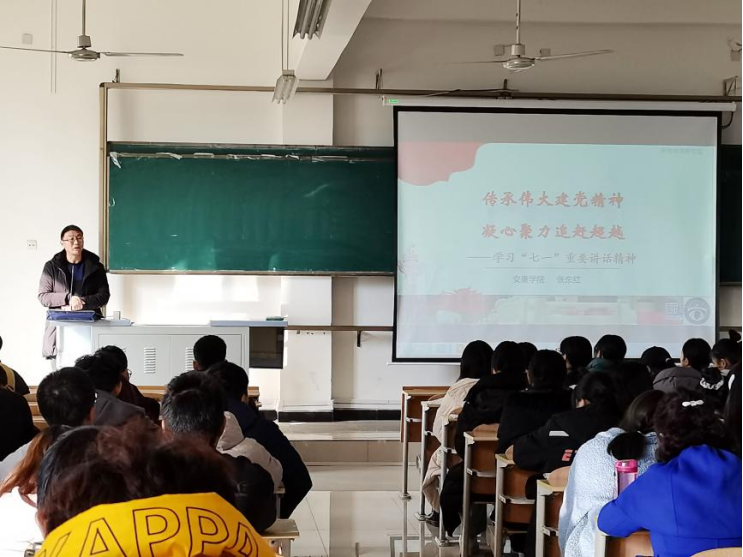 课堂上,张东红以习近平新时代中国特色社会主义思想为指导,围绕百年历程回顾、‘七一’重要讲话要点学习、传承伟大建党精神等三个方面的内容,联系国内国际形势,结合青年学生成长阶段特点,融汇文史哲等多个学科知识,用风趣生动的语言、丰富的生活案例、精美的多媒体课件,为学生们深入浅出地讲解了中国共产党从成立至今的百年艰苦卓绝的奋斗史;中华民族从站起来、富起来到强起来,全面建成小康社会的伟大成就;伟大的建党精神等重要内容。讲课中,张东红鼓励学生学好专业知识,作为自己实现人生价值的基础,同时不断锻炼提升自己各方面的能力,使自己在大学期间得到全方位的成长。