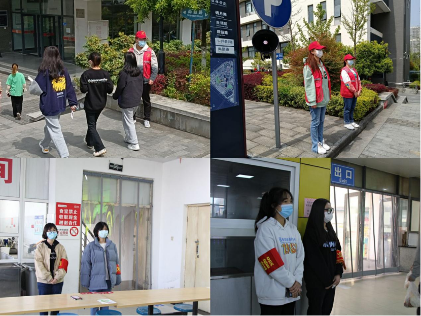 欧冠投注官网入口疫情防控志愿者在教学楼和餐厅进行文明劝阻志愿服务
