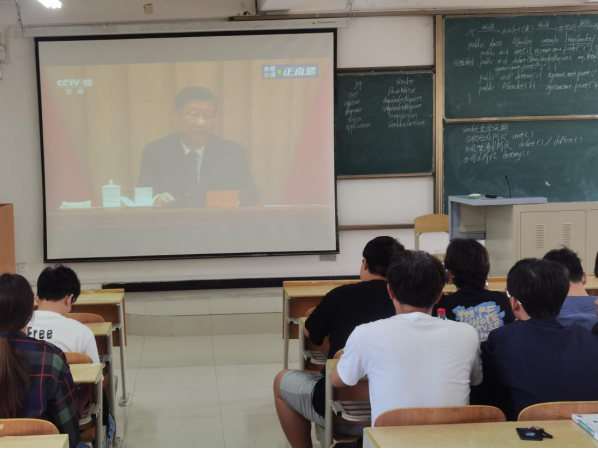 欧冠投注官网入口学生第一、二党支部全体党员及学生干部在教学楼1312集中观看大会