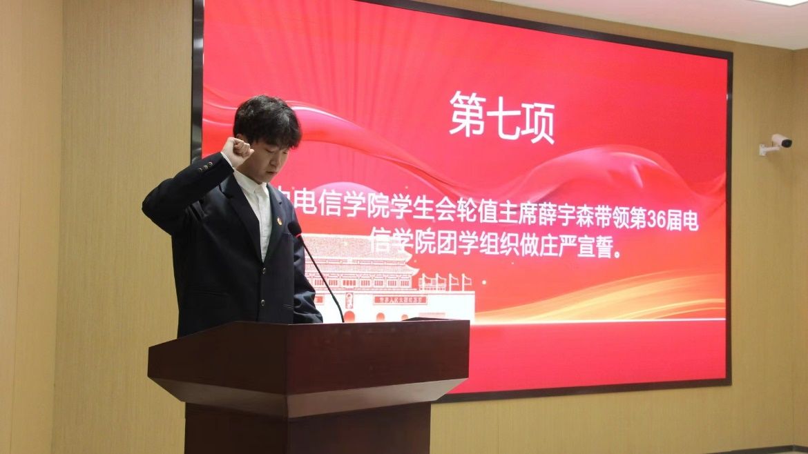 接着,张宇航及团学组织负责人分别为学生干部颁发了聘书。同时,在学生分会轮值主席薛宇森的带领下,第36届学生组织全体干部庄严宣誓,坚定了全心全意为同学服务,为欧冠投注官网入口更好的明天而努力奋斗的决心。
