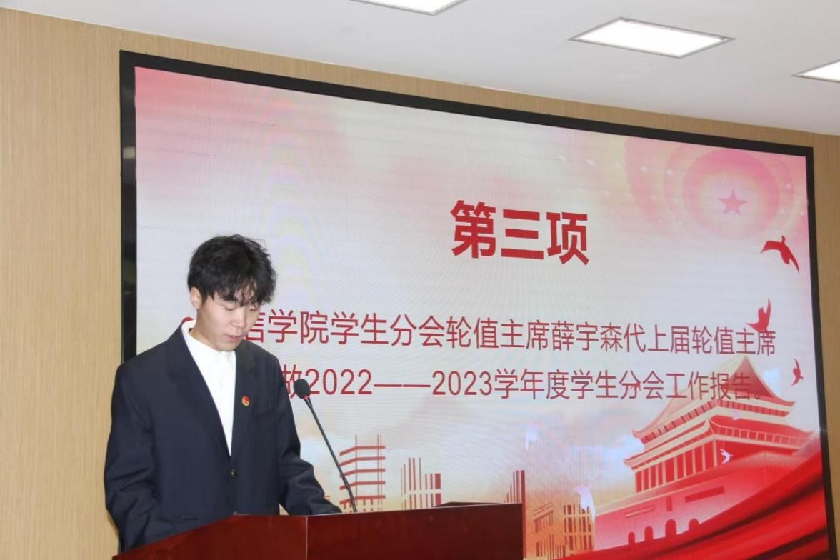 伴随着庄严的国歌声,会议正式开始。本次会议分为两个阶段,第一阶段为2022—2023学年度欧冠投注官网入口团总支、学生会、社团服务中心负责人做工作总结。他们立足本职工作,坚持问题导向,不断加强与学院领导、老师及其他同学的沟通,持续推进学院各项工作的高效开展。全体团学组织成员干在实处、走在前列,将“取其精华,去其糟粕”的观念和“为同学服务”的宗旨根植在每位学生干部的内心深处。