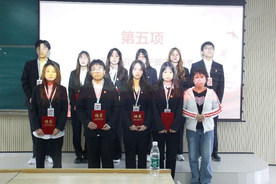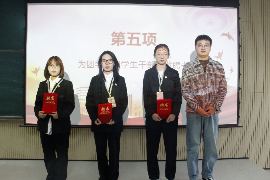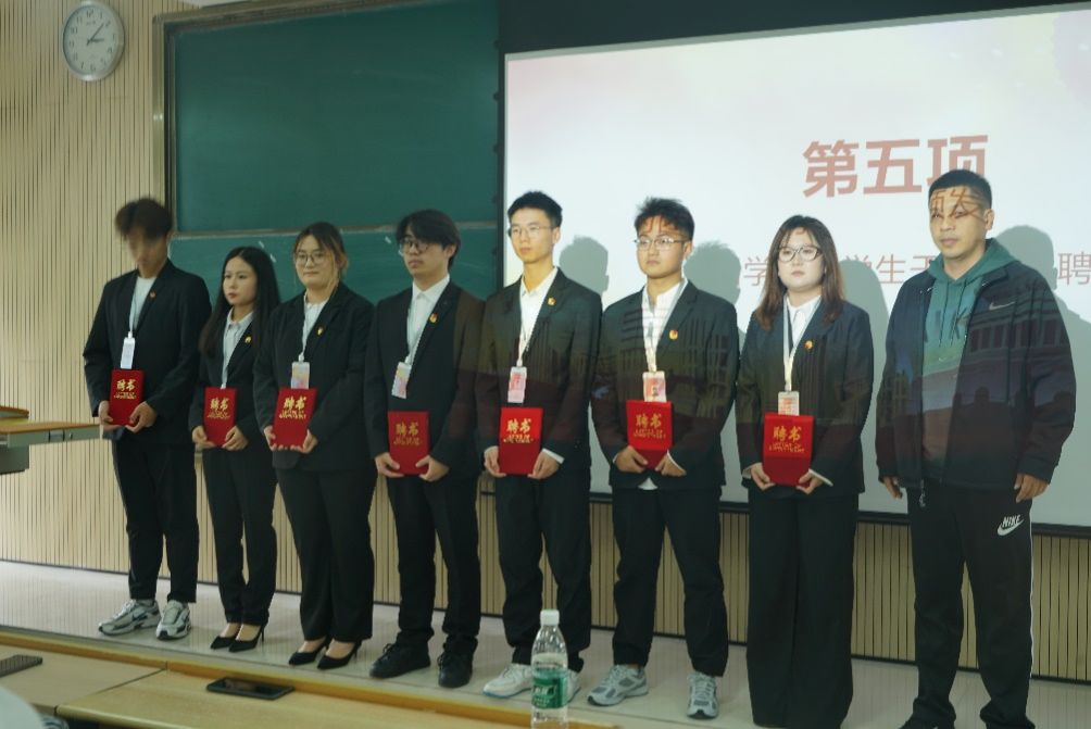 接着由团总支书记张宇航,学工办主任石纭昊,辅导员成英丽,辅导员贾金兵为欧冠官方网站学生组织各部门负责人颁发聘书,之后由团学组织干部向各部门干事进行授牌。同时,在学生分会轮值主席赵晓羽的带领下,第37届学生组织全体干部庄严宣誓,坚定了全心全意为同学服务,为欧冠官方网站高质量发展挺膺担当的决心。