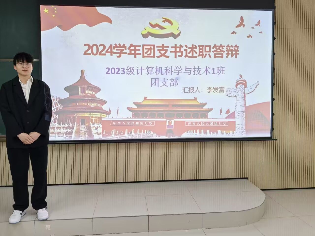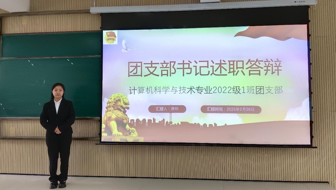 紧接着,进入团支书述职答辩阶段。各班团支书围绕自身职责,细致汇报了支部成员思想状况、团日活动开展、无手机课堂推进、青年大学习完成情况以及其他团务工作进展。通过丰富多样的主题团日活动,团支书们有效引导同学们深入学习党史,推动支部思想建设取得显著成效,有力保障了各项团务工作的顺利开展。答辩时,团支书们表达清晰、自信大方,充分展示了团支部的工作成果。台下同学们认真聆听、积极思考,相互交流答辩收获,在思想碰撞中收获满满。