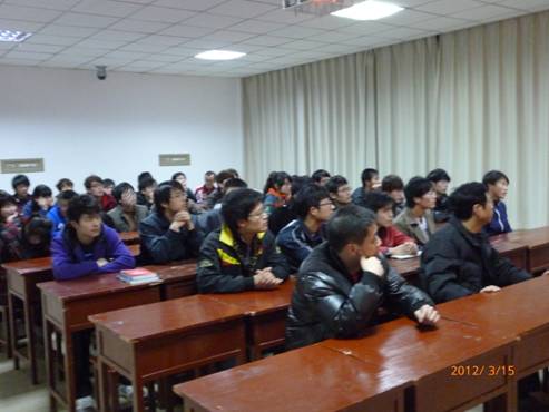 为了提高学生对专业的认识,树立正确的就业观、学习观,营造良好的学习风气,315,系学办、计算机应用教研室邀请99届计算机科学与技术专业优秀毕业生、深圳市大真条码技术有限公司项目经理张恕孝做了题为“大学生就业指导”报告会,计算机应用教研室主任刘宏、学办主任石纭昊、辅导员王贵新及计算机本专科50余名学生参加了报告会。