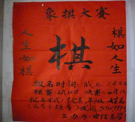 6月6日晚,由电子与信息工程系承办的欧冠官方网站2013年公寓文化节--象棋比赛在江北校区1号教学楼1321室举行。比赛中选手们展示了自己沉稳和睿智,领略了“国粹”的风采,增进了彼此的了解,也丰富了大家的校园文化生活。
