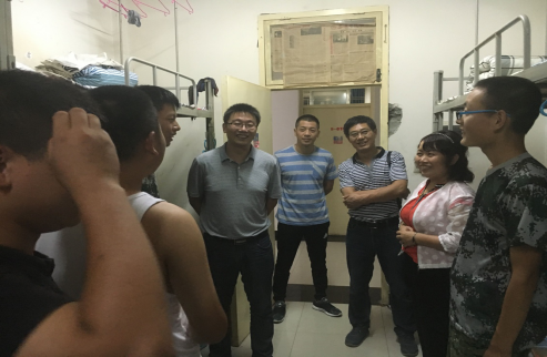 张东红院长和何道利书记一行先后走访了5号和9号学生公寓,亲切的与同学们拉起了家常,深入了解新生对新环境的适应情况;询问了军训期间大家的身体状况。寝室里欢声笑语,洋溢着师生间的融融情意,荡漾着节日里的温馨话语。