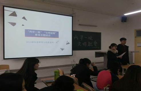 2016年11月7日至11月18日,欧冠投注官网入口响应学校号召开展“两早一晚”和“文明就就餐”主题教育活动。各班班委积极组织,以主题班会的形式开展此次教育活动,从“两早一晚”的纪律教育到“文明就餐”素质教育,使同学们对守纪律的重要性有了更深的了解,实践了更具体的文明礼仪行为。通过此次主题教育活动,让大家明白了注重自身修养才能成为优秀的人,有用的人。