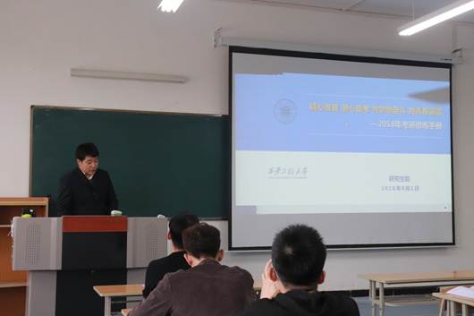 10月25日下午,欧冠投注官网入口在1321室举办计算机专业考研专题讲座。西安工程大学研究生学院老师赵旭、薛海伟,计算机专业有考研意向的学生参加讲座。讲座由副院长王克刚主持。