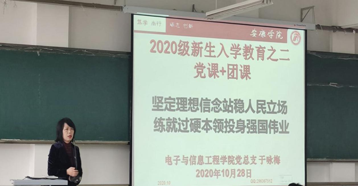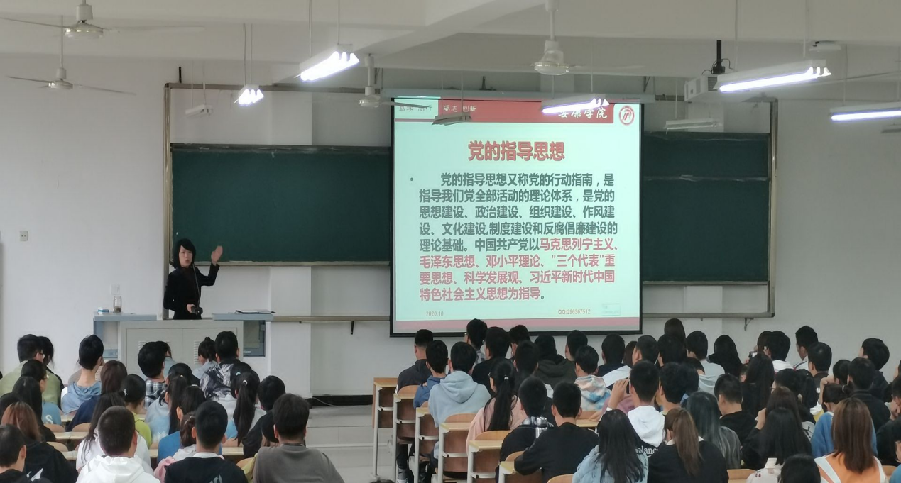 10月28日,欧冠官方网站在江北1301教室开展了主题为“坚定理想信念站稳人民立场,练就过硬本领投身强国伟业”的入学教育第二讲,党总支书记于咏梅主讲,全体2020级新生参加。