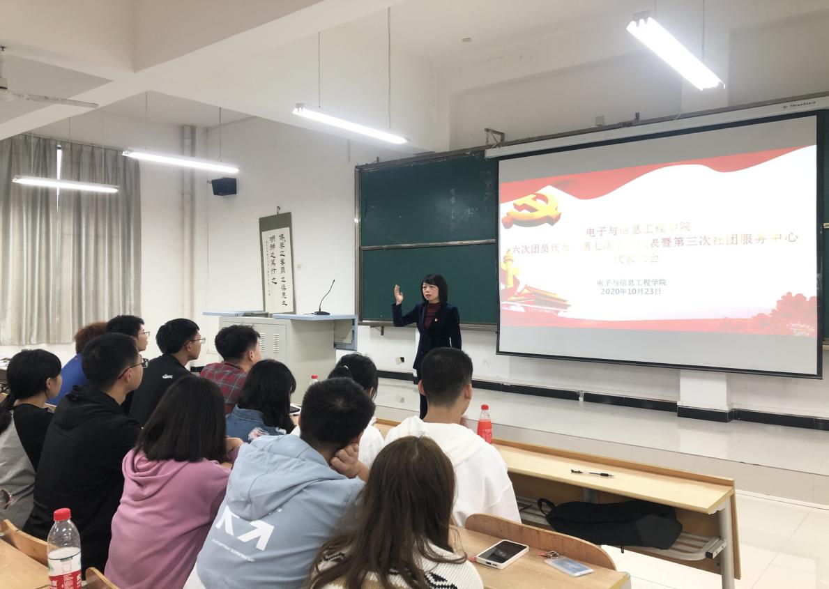 10月23日下午4点,欧冠官方网站团总支在1201教室顺利举行了欧冠官方网站第六次团员代表、第七次学生代表大会暨第三次社团服务中心代表大会。欧冠投注官网入口党总支书记于咏梅;学生工作办公室主任石纭昊;党总支组织委员、学生第一党支部书记成英丽;学生第二党支部书记、团总支书记李章雨、辅导员程晓梅老师出席此次会议。上一届团总支、学生会、社团服务中心主要学生干部以及2018、2019级班团干部代表与学生代表参加了大会。