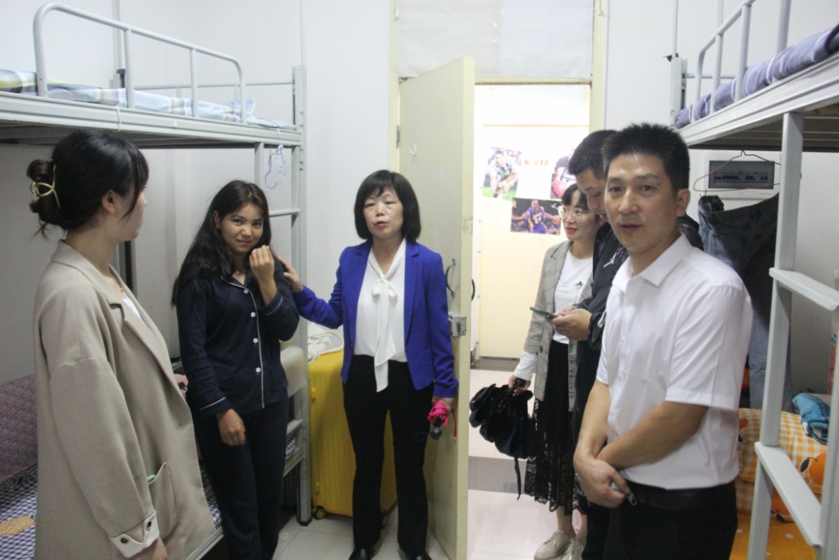 8月29日下午,欧冠投注官网入口院长陈守满,党总支书记于咏梅,副院长宋权华,副书记蔡正旺,学工办主任石纭昊,辅导员程晓梅、李章雨老师一起先后来到9号男生公寓和5号女生公寓,看望了全体新生。
