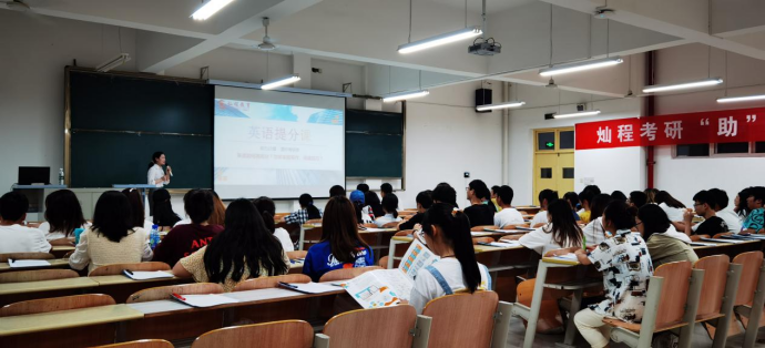 9月10日,为助力2023届同学考研,欧冠官方网站学工办牵头,特邀灿程考研机构开展英语公开课,帮助考研同学了解英语高分技巧,学习阅读和写作的方法。本次参加公开课的同学共计70余人。