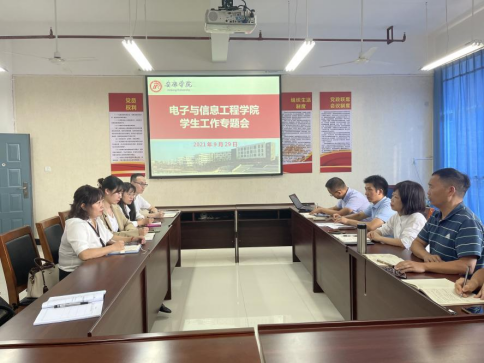 929日,电子与信息工程学院在江北校区科技楼B702召开学生工作专题集中研讨各年级学生在生活、学习、思想、行为等方面存在的问题以及学生管理工作中存在的不足。院长陈守满,党总支书记于咏梅、副院长王克刚、副书记蔡正旺、副院长宋权华学生工作办公室主任石纭昊及全体辅导员参加本次会议。