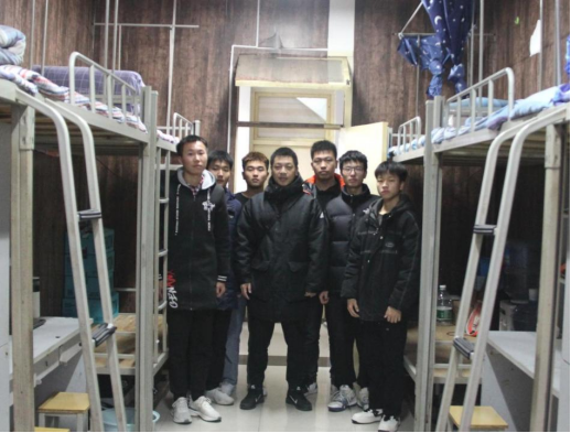 欧冠投注官网入口学工办主任石纭昊与授牌新生宿舍成员集体合影留念