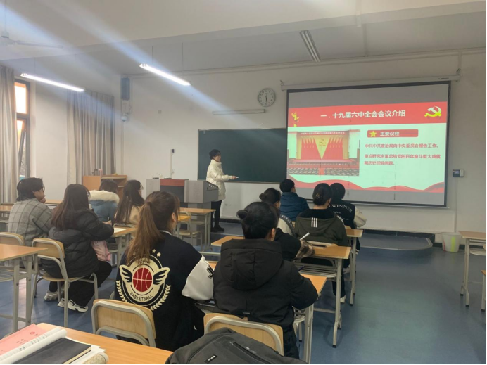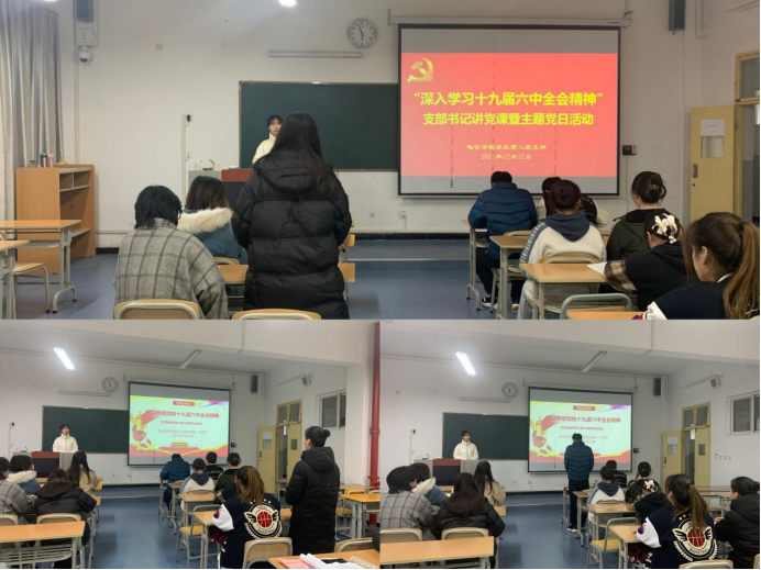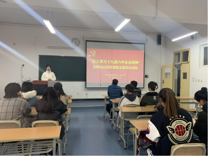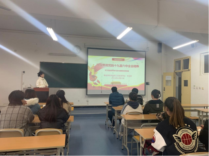 2021年12月22日下午,欧冠投注官网入口学生第二党支部在一号教学楼1321教室组织召开党员大会,支部书记李章雨老师为全体党员讲授了“深入学习十九届六中全会精神”专题党课,党支部支委、全体在校党员、新一期发展对象参加了此次活动。