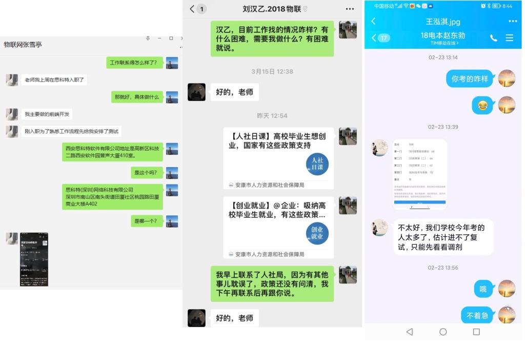 欧冠投注官网入口辅导员李章雨、程晓梅、张宇航联系就业帮扶学生