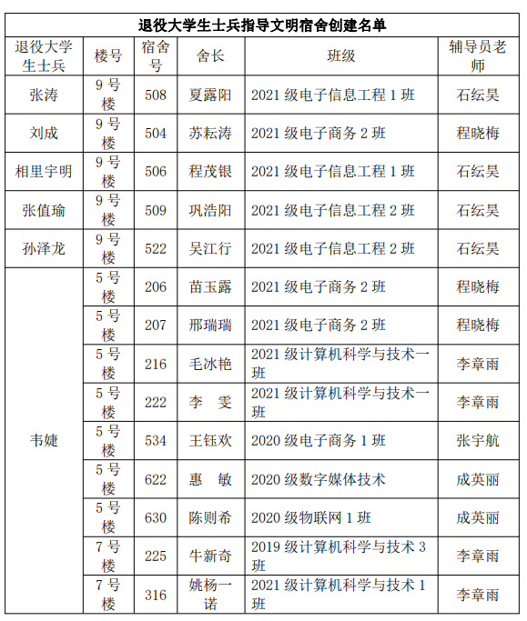 欧冠投注官网入口退役大学生士兵指导文明宿舍创建名单