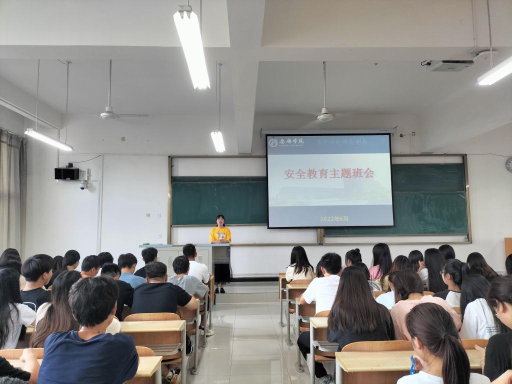 班会最后,为保障学生的人身、财产安全,班会针对安全主题给同学们进行了要求。一是要求学生做好疫情防控工作。严格遵守执行各项疫情防控规定,做好个人防护,减少到人员密集的公共场所活动;二是要求学生防范各类诈骗。对QQ、微信、虚假网站等网络渠道加强警惕,涉及金钱要慎重。不轻信、不贪心、多思考;如若被骗,及时报警,避免产生不良后果。三是要求学生预防暑期安全事故,严防溺水等事故发生,禁止私自到江、河、湖泊、池塘、水库等水域游泳,外出断电断气,杜绝火灾隐患等。