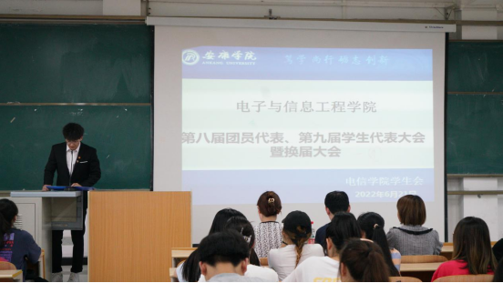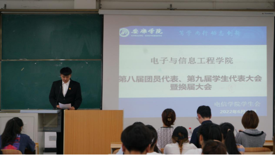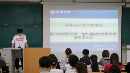 2022年6月21日晚上19:00欧冠官方网站在1404教室举办了第八届团员代表、第九届学生代表暨第三届社团服务中心代表大会。欧冠投注官网入口学生第二党支部书记李章雨、团总支书记张宇航、辅导员吕以宁出席本次会议,欧冠投注官网入口团总支成员、学生会成员、社团服务中心成员参加。