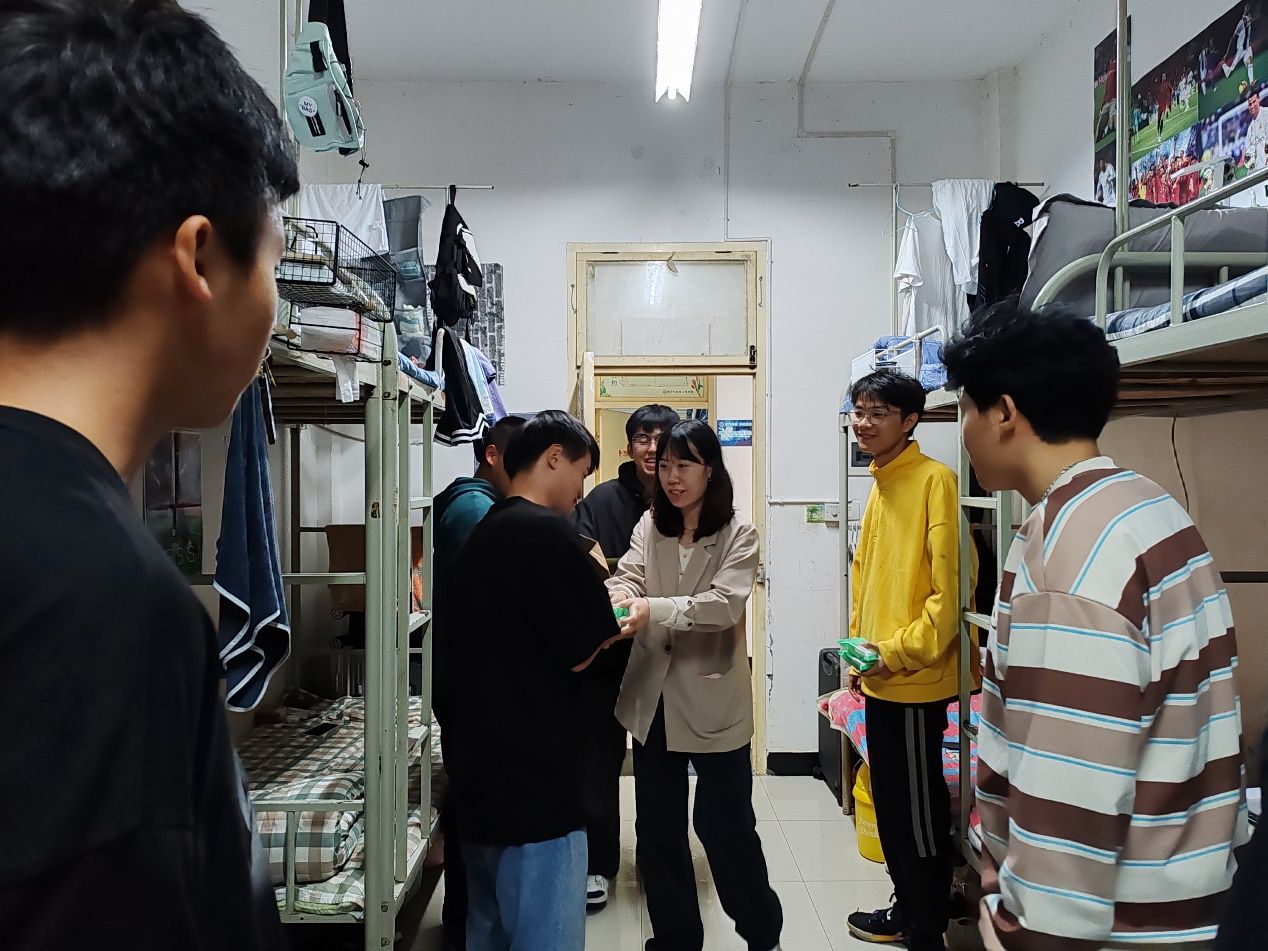 欧冠投注官网入口学工团队通过走进班级、深入宿舍、走近学生,全方位、多渠道把关心祝福传递给每一名学生,教育引导青年学生不负韶华、勇担时代重任,勤学笃行,涵养爱国之情,砥砺报国之行,争做担当民族复兴大任的时代新人。