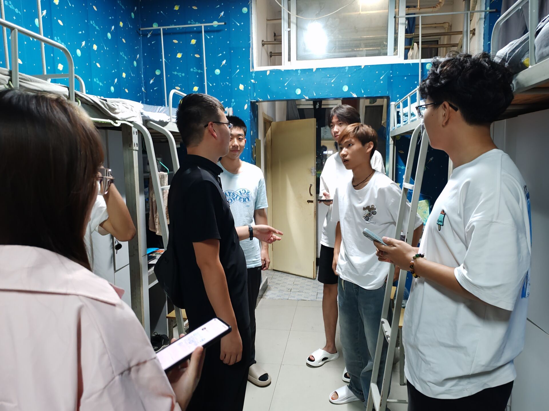 在走访过程中,各位老师首先向新生们致以热烈的欢迎,并逐一询问了他们的姓名、家乡、兴趣爱好以及初来乍到的感受。新生们略显羞涩却又不失热情地回应着,分享着各自的故事与期待。有的新生表达了对未来专业学习的憧憬,有的则对即将展开的社团活动和校园文化生活充满了好奇。老师鼓励各位学生要珍惜大学时光,勇于探索,敢于挑战自我。