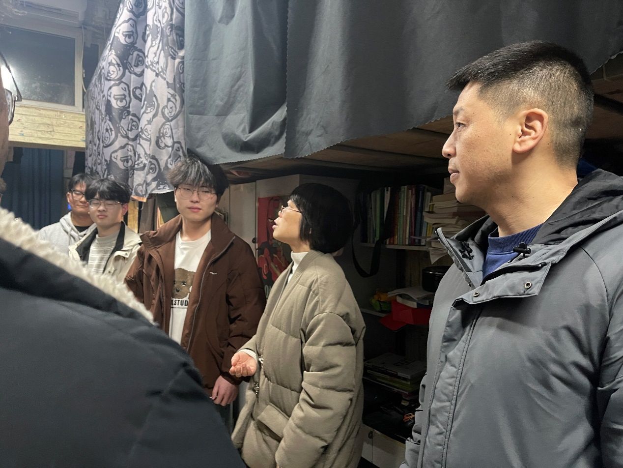 新学期伊始,为及时了解学生的学习生活状况,传递学院的关怀与温暖,欧冠投注官网入口党总支书记于咏梅带领全体辅导员,于2月16日晚深入学生宿舍,开展了走访慰问活动。