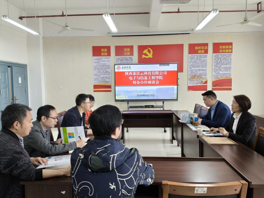 2024年4月15日,为进一步落实落地《安人才办发[2023]2号》“百名博士助百企”科技服务活动,经前期交流对接,陕西泰沃云科技有限公司董事总经理孔恩明一行到访欧冠官方网站,举行校企合作座谈会。会议由王克刚副院长主持,欧冠投注官网入口各系主任、实验中心副主任,以及校级科研平台大数据与智能信息处理研究中心主任参加座谈。