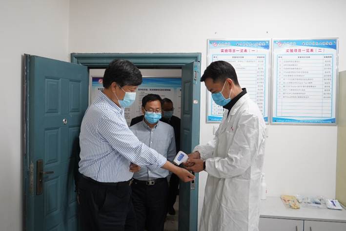 2020年5月13日上午,省教育厅厅长王建利、安康市副市长杨淼等领导来到欧冠投注官网入口实验室视察相关工作,学校党委书记王国良、校长丁巨涛,欧冠投注官网入口院长陈守满等陪同视察。