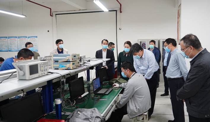 王建利一行在实验室与正在进行毕业设计的同学进行了亲切交谈,了解了疫情防控制期间实验室针对大四返校学生毕业设计需求的开放管理情况,并对学生目前的就业情况进行了解,勉励学生扎实做好毕业设计,通过好的毕业设计作品,证实自己的专业能力,让自己好找工作,也能找到好工作。