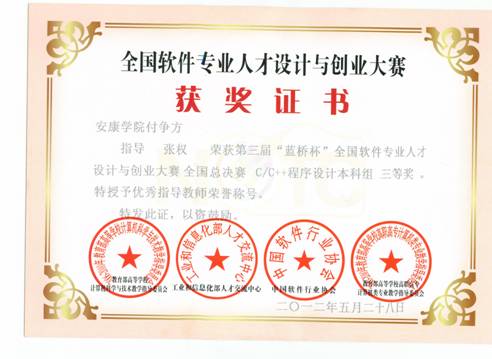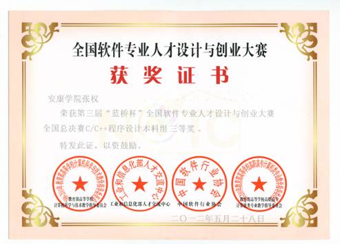 第三届“蓝桥杯”全国软件专业人才设计大赛总决赛成绩于5月27日揭晓,电信系参赛学生获得全国二、三等奖各一项,获陕西赛区奖项23项。