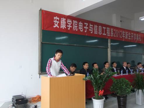 10月11日,电信系2012级新生开学典礼在江北校区1303教室隆重举行,2012级453名新生,系主任张东红、系总支书记李红兵、教学副主任陈守满、科研副主任王庆春、系办学办主任、教研室主任、教师代表出席了典礼。大会由系总支书记李红兵主持。