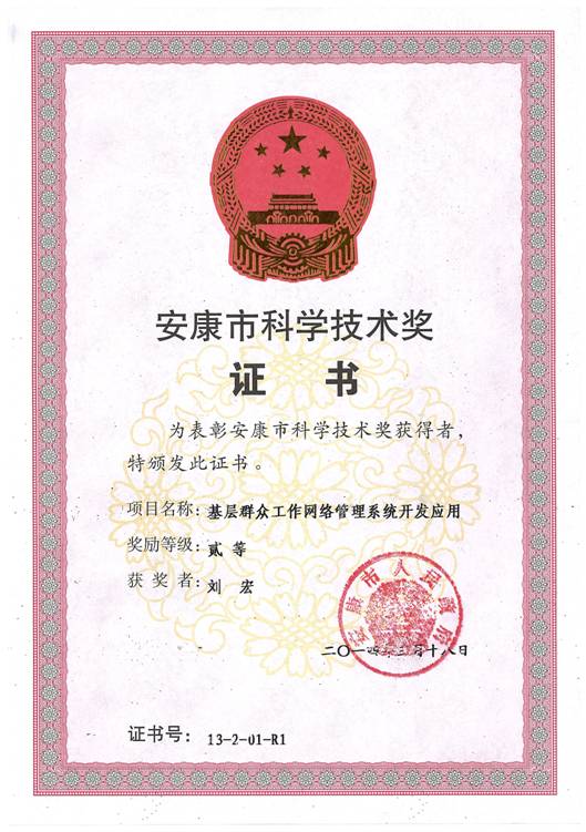 接省教育厅、安康市政府文件,电信系副教授刘宏主持完成的“基层群众工作网络管理系统开发应用”项目获安康市科学技术二等级。这是电信系近二年获得的一项市级以上政府科学技术成果奖,是电信系坚持开放办学,立足服务地方,培养应用型人才理念取得的一项成果。